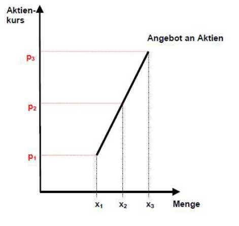 In der VWL haben wir uns an das Standard-Marktmodell von Angebot und Nachfrage gewöhnt. Im Standard-Marktmodell nimmt man an, dass die Angebotskurve im Preis-Mengen-Diagramm (ceteris paribus) ansteigend ist: Je höher der erzielbare Preis, desto mehr Güter werden die Marktteilnehmer anbieten. Für den Aktienmarkt an der Börse ist dieses Modell auch sicher eine gute Erklärung. Wenn der Preis für eine Aktie ansteigt, werden mehr Aktionäre ihre Aktie zu verkaufen bereit sein, wenn er fällt, weniger Aktionäre.